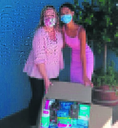 Vredenburg High School thanks former learner Inge Lee Pharo (right) for her sanitary pads donation to the school. Pharo, a model with 20 Model Management, is running a sanitary drive to enable all girls to have access to this much needed necessity. Pictured with her is acting deputy principal Lemfvia Craill. Photo: