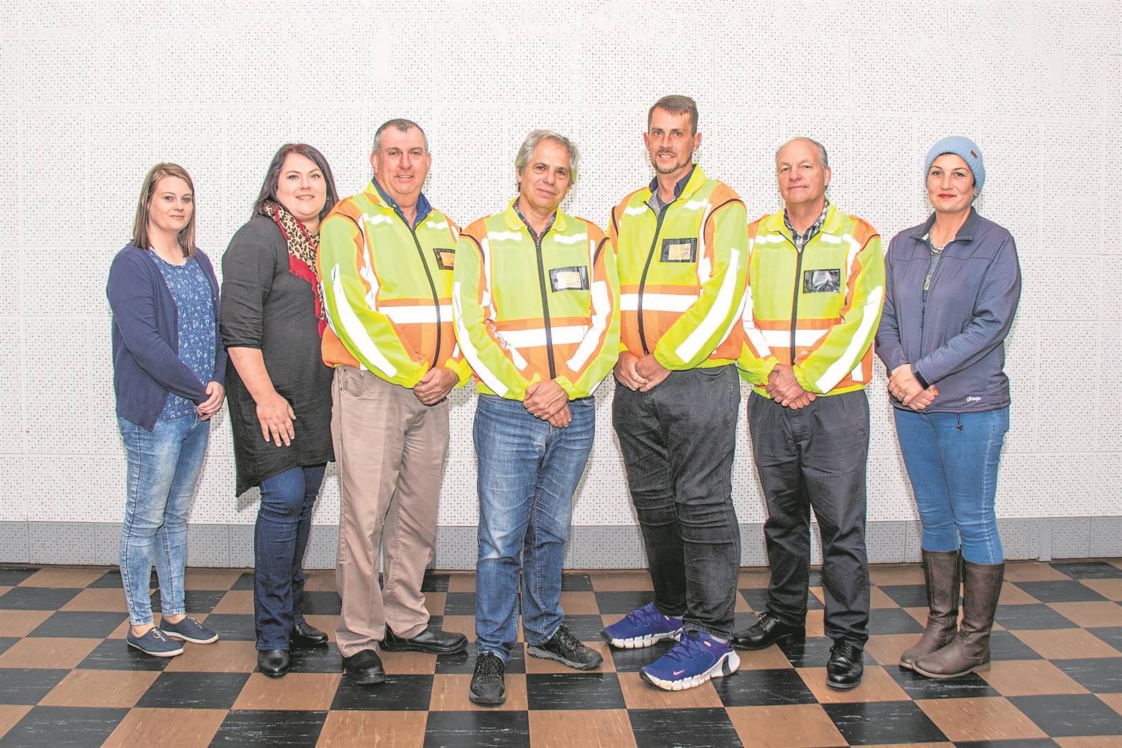 Trots met hul sertifikaat is (voor van links) Carli Smook, woordvoerder van die Esperia-buurtwag (en sekretaresse van die Vredenburg-GPF), Sheryl Kapot, ondervoorsitter van die Esperia-buurtwag, en Kim Kalsbeek, sekretaresse. Agter staan Freddie Smook, GPF-voorsitter en stigterslid van die buurtwag, en die bestuurslede Mariana Kotze en Jean-Pierre Vorster. Foto: Alida Buckle