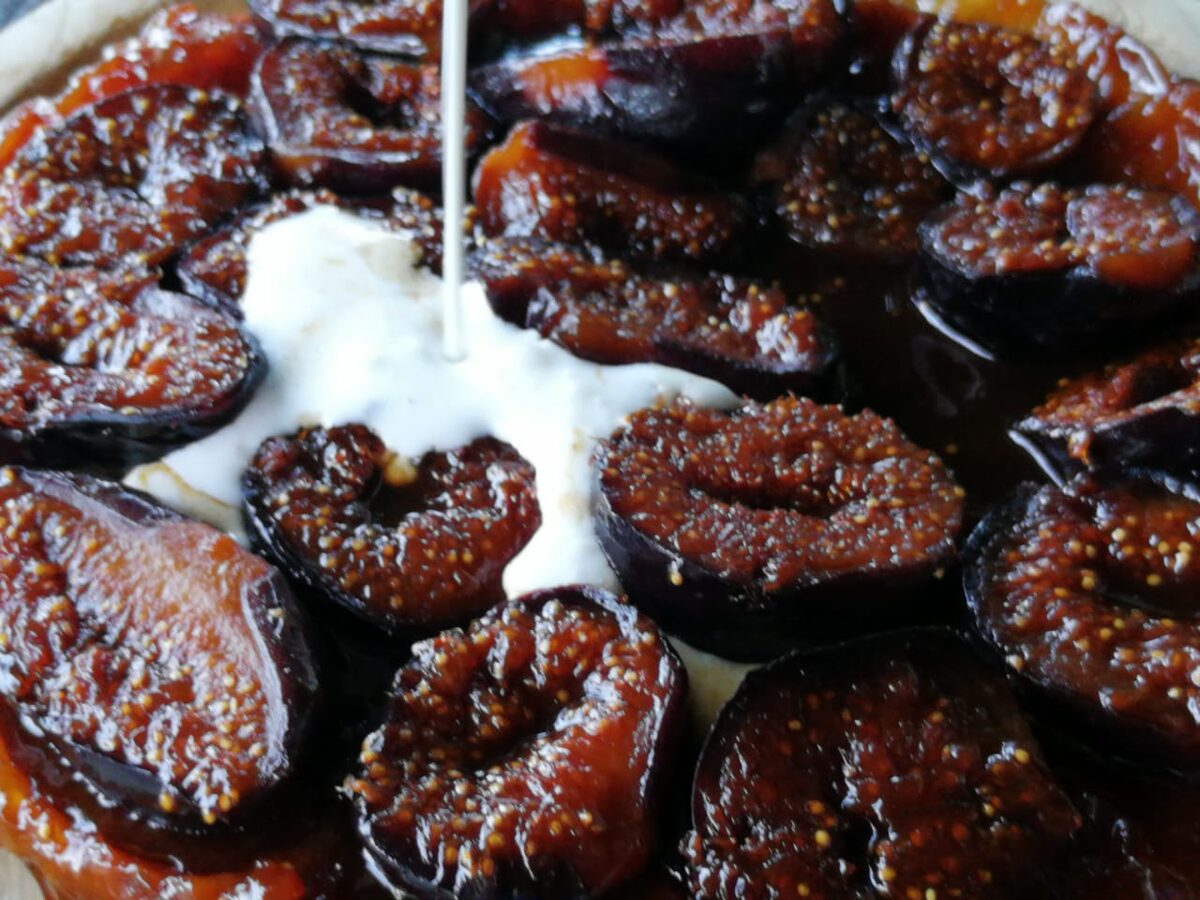 Die Franse maak mos ’n tarte tatin – oftewel onderstebo appeltert – maar ek besluit toe vye is net die regte ding ook hiervoor.