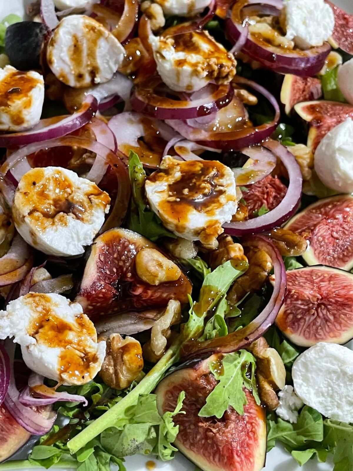Ook as ’n slaai, in kwarte gesny op vars roketblare met repies Parmaham oor geskeur, bolletjies bokmelkkaas of labneh (yogurt balletjies), en ’n titseltjie goeie balsamiese vinaigrette of nog beter, granaatstroop, is perfek.