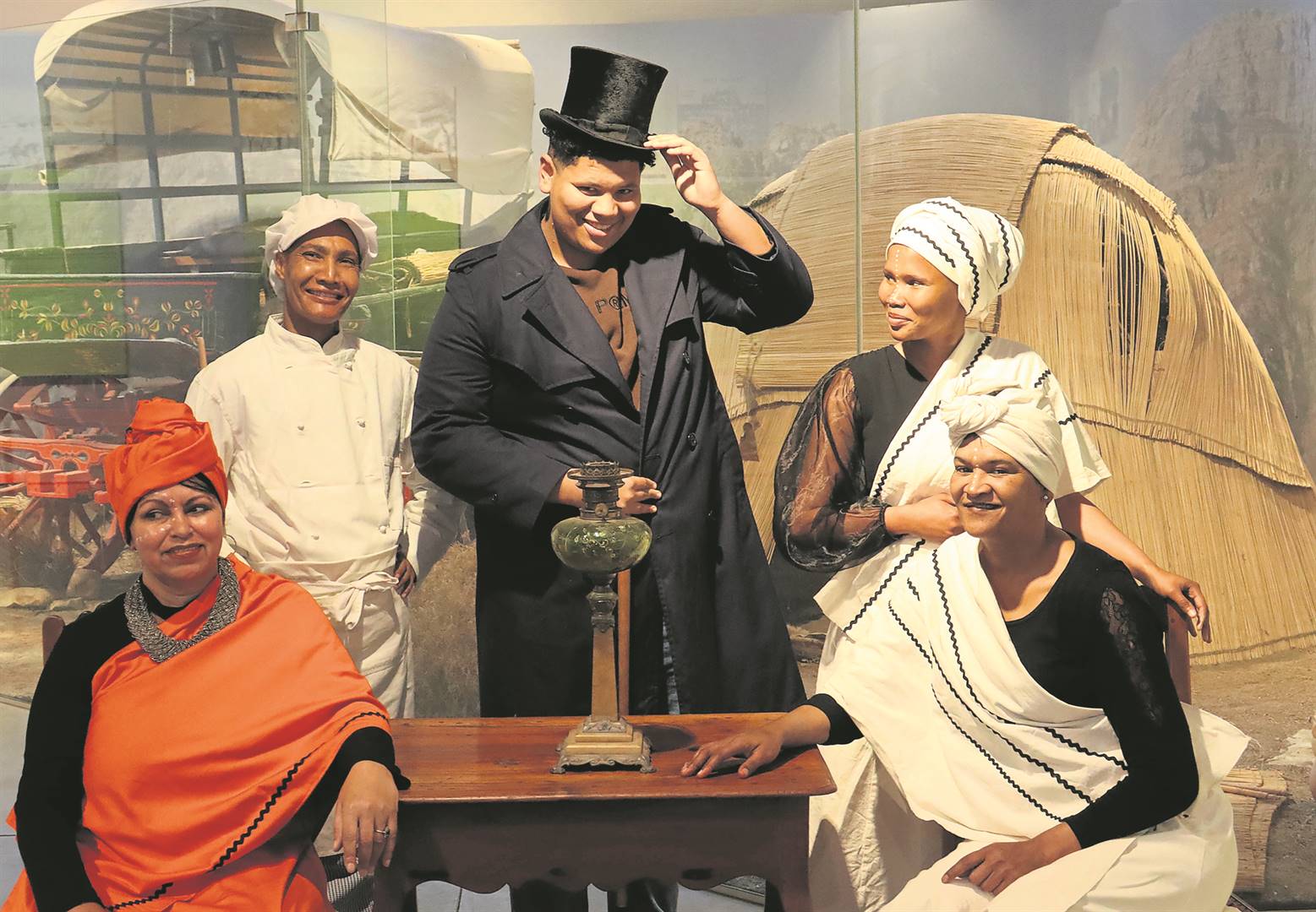 Die personeel van die Worcester-museum het vanjaar Erfenismaand (September) ter harte geneem om te fokus op hul, en die land se, diverse erfenis. Die Vriende van die Worcester-museum se leuse is: Gesamentlik, Erfenis, vandag en môre. “Ons is net sterk as ons verenig,” het Natasha Joubert, Mej. Suid-Afrika, vanjaar gesê. Die personeel het die week ná Erfenisdag ’n byeenkoms gehou en gekies volgens watter kultuur hulle wil aantrek. Van links is Ellen Strauss en Deidre Peters. Agter is Wilma Barry, Emile Noble en Ronique Snyman. Belangstellendes is welkom om die Worcester-museum te besoek teen slegs R5 per kind en R15 vir volwassenes. Skoolgroepe wat vooraf bespreek, is gratis. Besoekers kan die museum gratis besoek op Dinsdae, Woensdae, Vrydae en ook Saterdae. Die museum bied graag toere aan vir diegene wat dit vooraf bespreek. Die doel van die Worcester-museum is juis om die plaaslike erfenis op te teken en lewend te hou. En die Vriende van die Worcester-museum het onlangs weer gehoor, by wyse van spreke van die voorsitter Charles Beukes, hulle is vrywilligers wat ’n diens lewer. Foto: Victor Theron