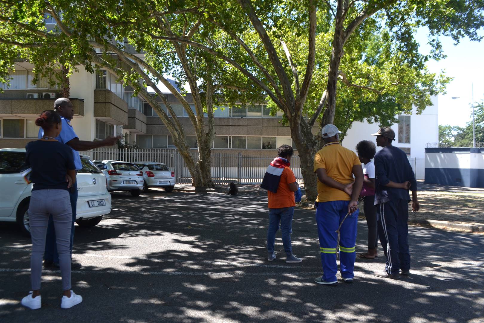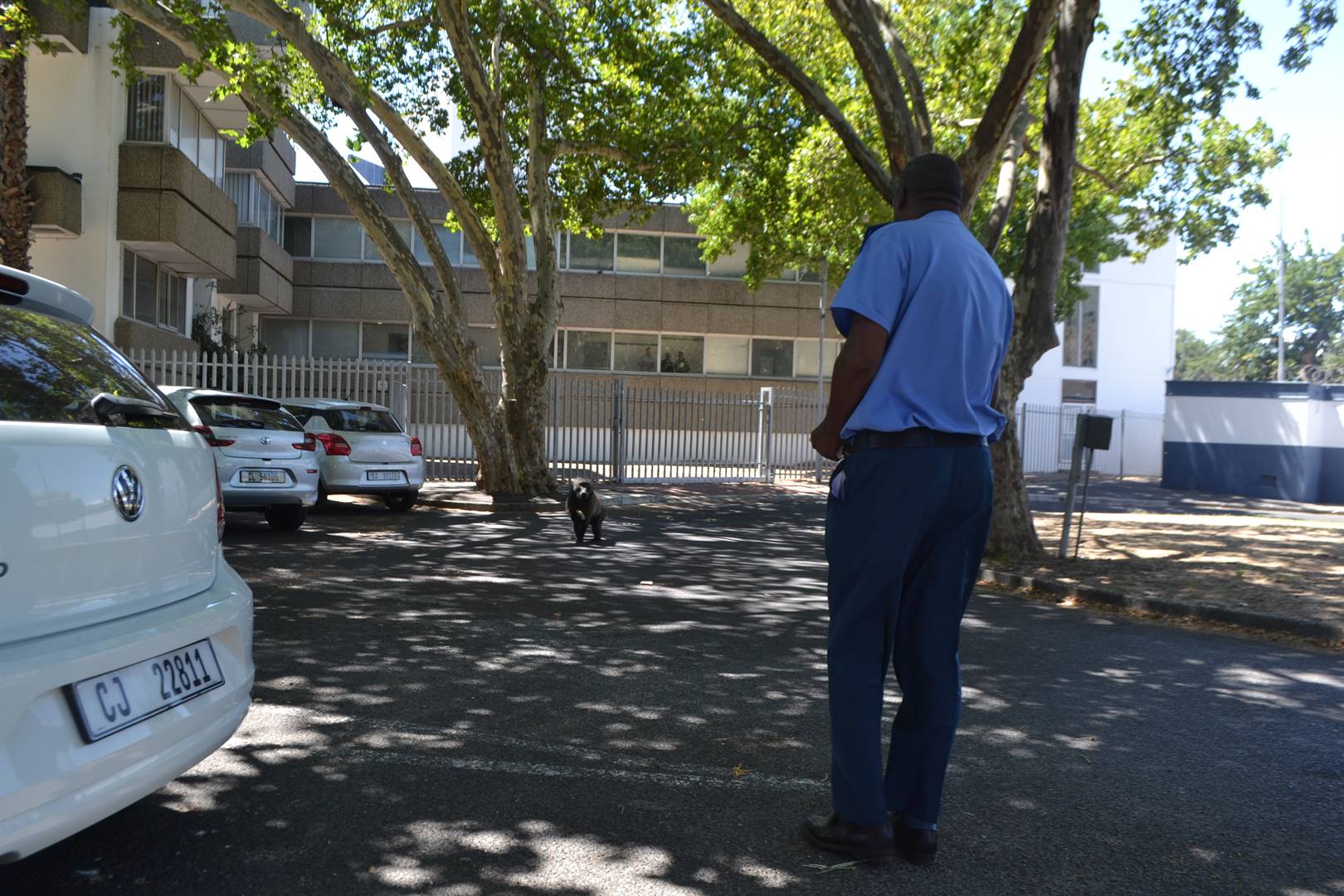 Volgens ’n munisipale wetstoepasser op die toneel word daar op ’n plaaslike veearts gewag om die bobbejaan te verdoof sodat die munisipaliteit hom na ’n veilige plek kan skuif.