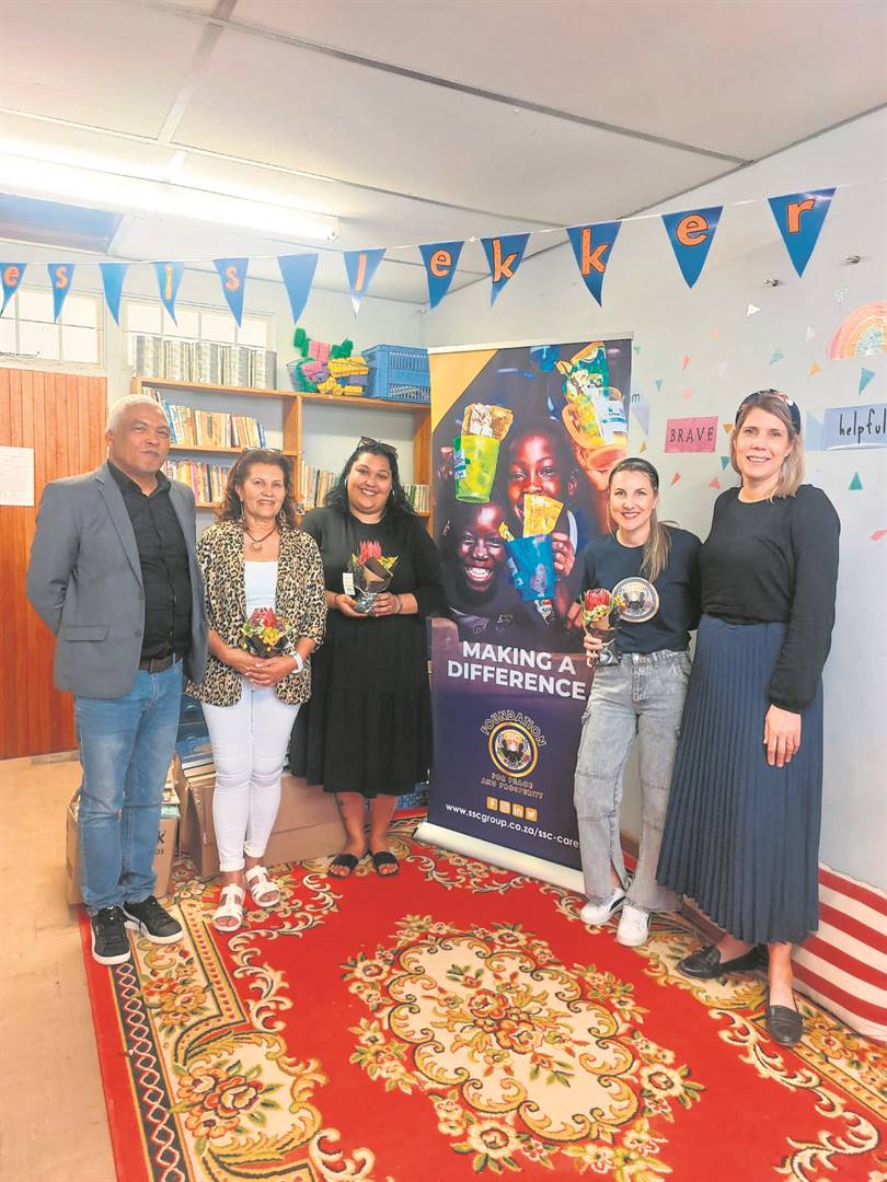 Lees is een van die belangrikste vaardighede wat ’n kind moet baasraak om wêrelde vir hom of haar oop te maak. In die lig van hierdie hindernis wat op leerders se paaie kom, het die oud-Tulbagh-inwoner en ook uitvoerende hoof van die Foundation for Peace and Prosperity in Johannesburg Renette Deal en haar assistent Robin-Claire De-Leeuw afgevaardig om boeke te versamel en dit aan die Laerskool Waveren se leerders te skenk. Die idee is om weer hier ’n biblioteek op te bou, want as die leerders op ’n vroeë ouderdom aan lees gewoond kan raak, sal lees ’n belegging in elke kind se lewe wees. Op die foto is van links Neville Jones (hoof), Andelene Michaels (vorige hoof en gemeenskapsleier), Robin-Claire De-Leeuw (assistent), Renette Deal en Heleen Maass.Foto: Peter Luitjies