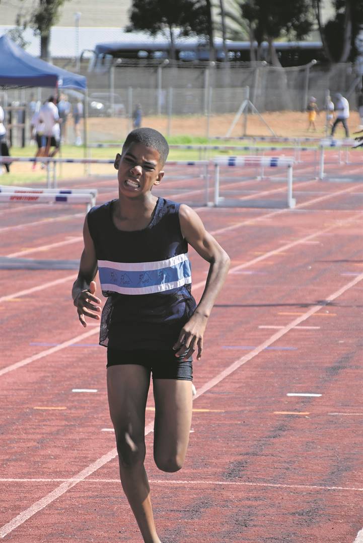 Caleb Phillipus (gr. 6) van Worcester Primêre Skool het die afgelope naweek aan die Noord-Boland-atletiekbyeenkoms in Worcester deelgeneem. Phillipus het ’n eerste plek in die seuns o.12-1 200 m losgehardloop, asook die verspring vir seuns o.12 gewen. Hy was die naaswenner in die 100 m-item vir seuns o.12. Op die foto hardloop hy in die 1 200 m-item.Foto: Jana Scheepers