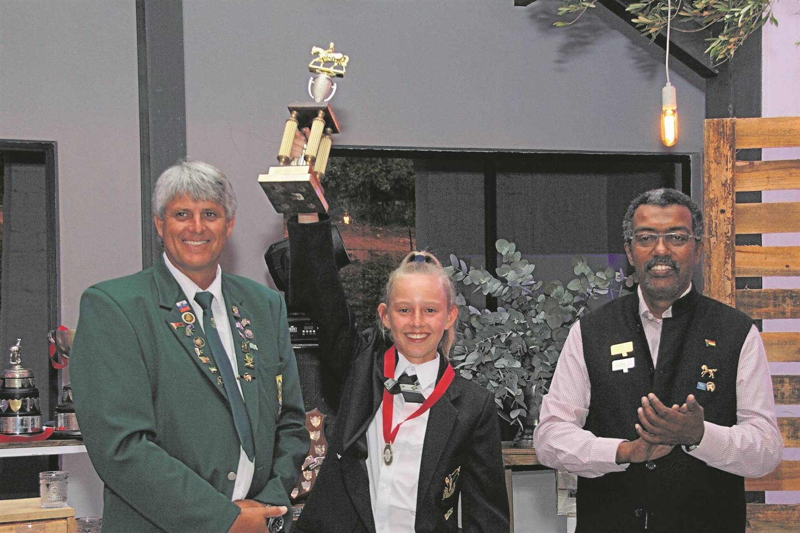 Carli Smith, ’n leerder aan Worcester-Noord Primêre Skool, het aan die einde van verlede jaar aan die Suid-Afrikaanse pensteek- junior kampioenskap in Rawsonville deelgeneem, waar sy vir die o.16-meisiespan gekies is. Carli het ook haar Suid-Afrikaanse kleure in dié vorm van perdesport behaal en is aangewys as die beste o.12-meisiesruiter. Links is sy by André Louw (voorsitter van die junior kommissie van die Suid-Afrikaanse Pensteek-vereniging) en Rafat Bella (voorsitter van die Internasionale Pensteekfederasie).Foto: Denfordstudios