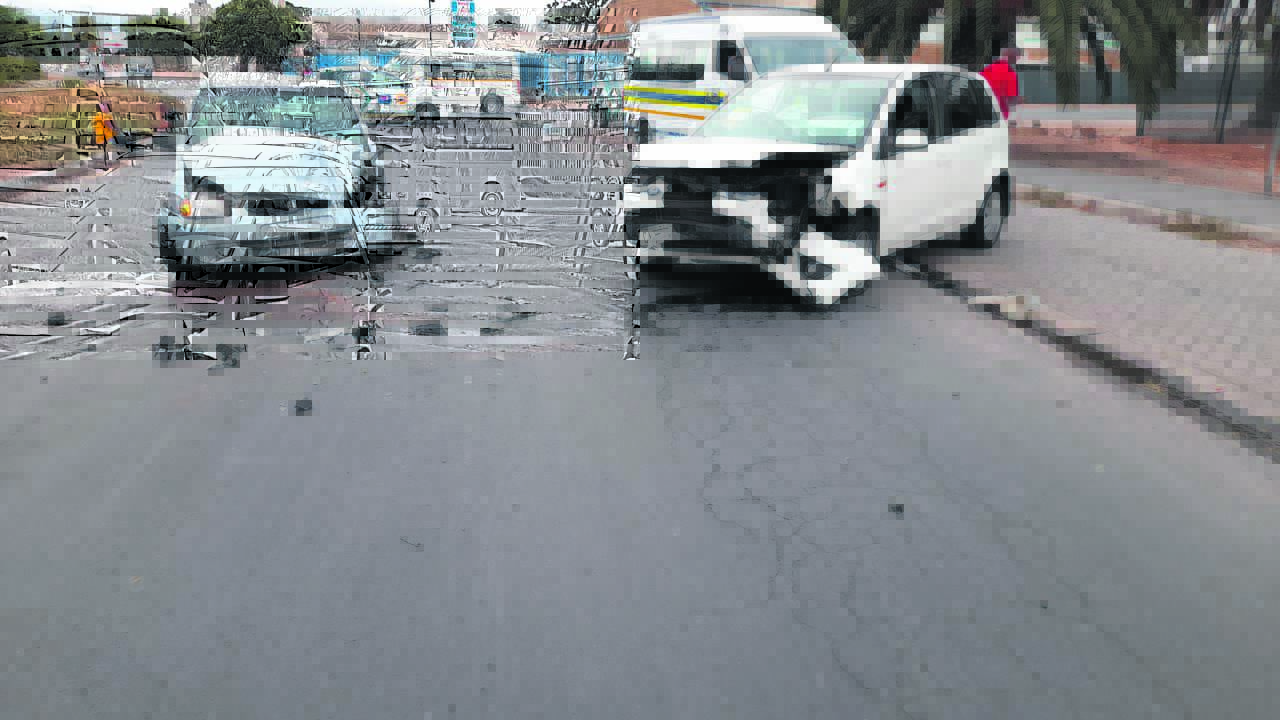 Talle botsings het van Sondag tot Maandag in en om die dorp gebeur. Hierdie botsing (bo) het Sondag in Raymond Polletrylaan plaasgevind. Twee insittendes van die Opel Corsa moes uit die wrak gesny word. Niemand is in die ongeluk dood nie. Foto: