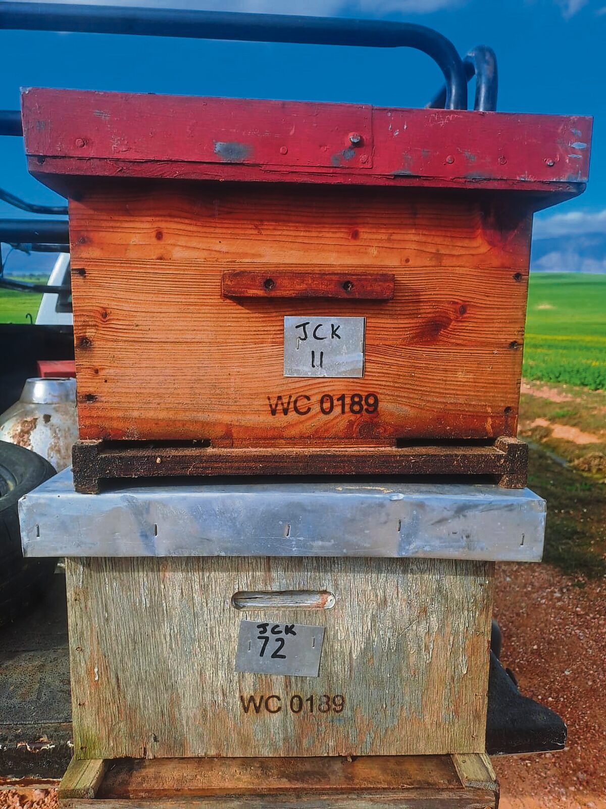 Kotze vermoed iemand het hom dalk “dopgehou” of kon die byekorwe steeds op ‘n manier van die pad af sien. Sy kiste is met ‘n unieke nommer – WC0189 – gemerk.