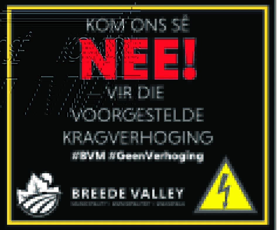 “’n Nasionale optog word vir 25 Januarie beplan, en talle inwoners sal by hierdie geleentheid wil aansluit. Ons moet opstaan en ons stem dik maak. Hierdie gaan nie oor politiek of ras of enigiets anders as die konstante donker waarin ons almal gedompel word nie. Ons en ’n paar ondernemings gaan opstaan en ons glo baie in die omgewing gaan – dit is hoog tyd.” –Vervolg op bladsy 2.