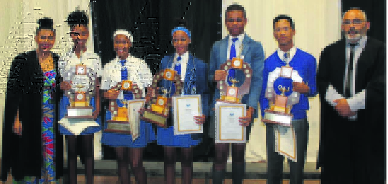 Die Hoërskool Waveren het onlangs sy topleerders by die prysuitdeling aangewys. By die skoolhoof, Andelene Michaels staan Lez’l van Wyk (gr. 4), Miguel Fredericks (gr. 5), Margenique Petersen (gr. 6) en Kiara Adams (gr. 7). Foto: Peterson Luitjies