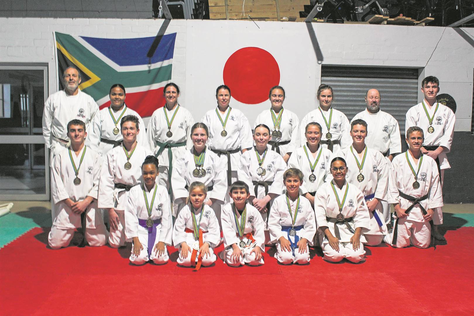 Karatekas van die Kaapse Wynland (die voormalige Boland-span) het onder leiding van kyoshi shihan Johnny Cardoso almal medaljes by die 44ste Suid-Afrikaanse Goju Khai-kampioenskap ontvang. Dié kampioenskap is van 9 tot 11 Augustus in Bloemfontein gehou. Die span is, agter van links: kyoshi shihan Johnny Cardoso, Lize Phillips, Genevieve Koen, Anneke van der Merwe, Melanie van Deventer, Anfra van der Merwe, sensei Bertie van Greunen en Niels Beyers. Middel: Jacques van Deventer, Ruan du Toit, Mare Gerstner, Elaine Venter, Karla Lotter, Luke Strydom en Luan van Zyl. Voor: Tyro-Lee Germishuys, Minki Viljoen, Jordan Sieckers, Danhil Nieuwoudt en Lina Phillips. Afwesig: Sensei Nico Drake, sensei Alton Sauers en sensei Jason Juicey. Foto: Enrico Claassen