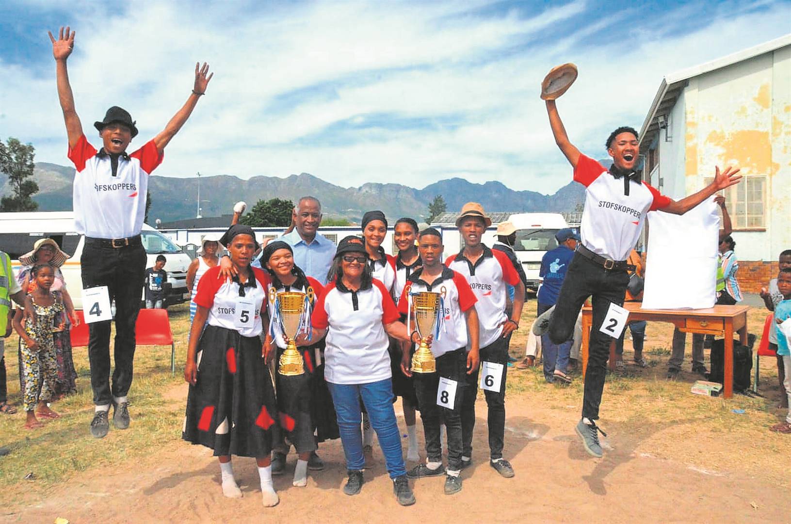 Die rieldansers van GB Batt NGK-skool in die Koo-vallei naby Montagu het letterlik stof in die oë van hul mededingers geskop by die jaarlikse Rieldansfees wat die afgelope naweek by Nederburg-primêre skool in die Paarl gehou is. Die GB Batt Stofskoppers is aan die einde van ’n pragtige dag van riel, met spanne van oor die Boland en Weskus heen wat meegeding het, as algehele wenners aangewys. Foto: