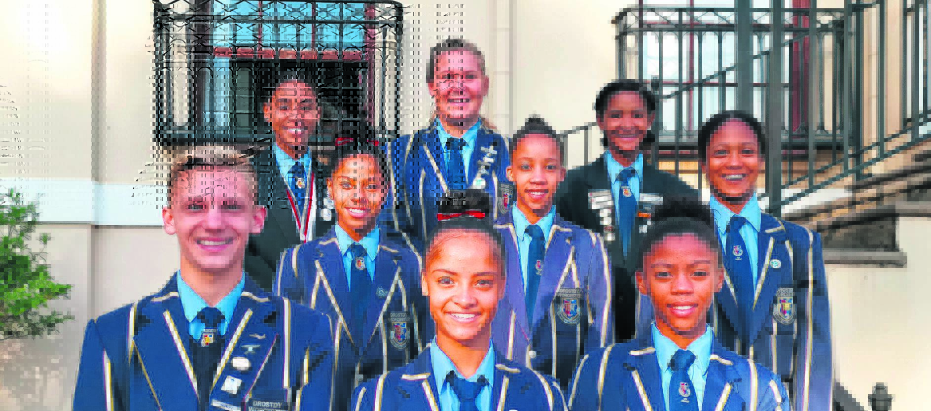 Die atlete van die Langerug-skool in Worcester neem van 1 tot 5 April deel aan die Suid-Afrikaanse Atletiekkampioenskap in Germiston. Van links is Cecile de Villiers (waarnemende skoolhoof), Arné Zwarts (o.15 hoogspring), JB Botes (o.19 gewigstoot) en Ian Louw (o.15 diskus).