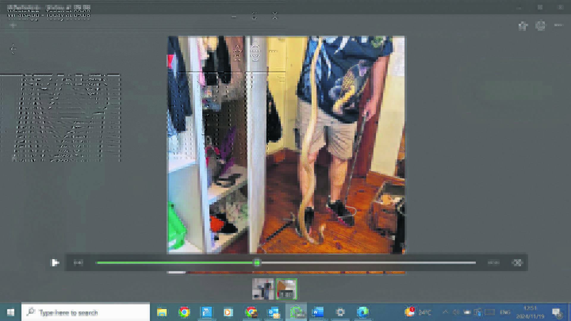 Ná sowat ’n uur se versigtige gesoek is die slang onder ’n ingeboude kas gevind waar dit weggekruip het.