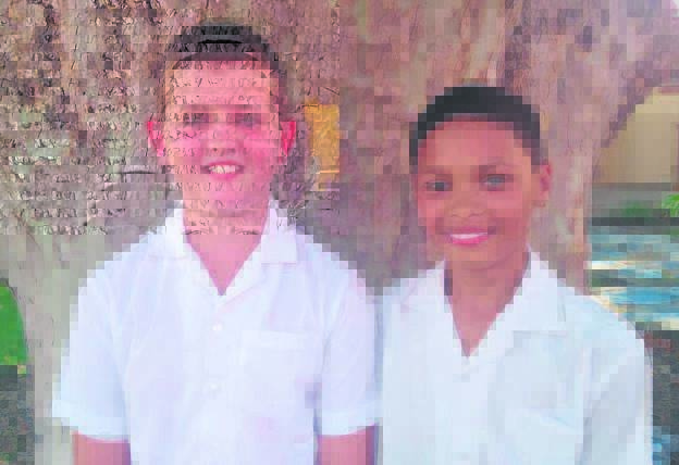 Hugo Jordaan (o.11) en Jaylon Baadjies (o.12), leerders aan Hoërskool Goudini, het die Noord-Boland-krieketspan gehaal. Foto: