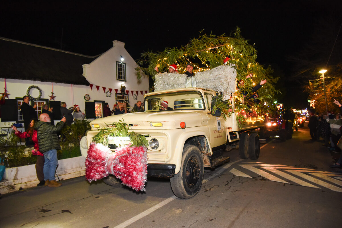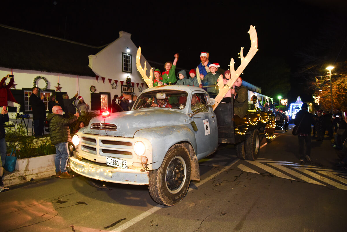 Ná sononder het die feestelike atmosfeer behoorlik lewe gekry met plaastrekkers wat hul stof afgeskud en in kersliggies getooi is.