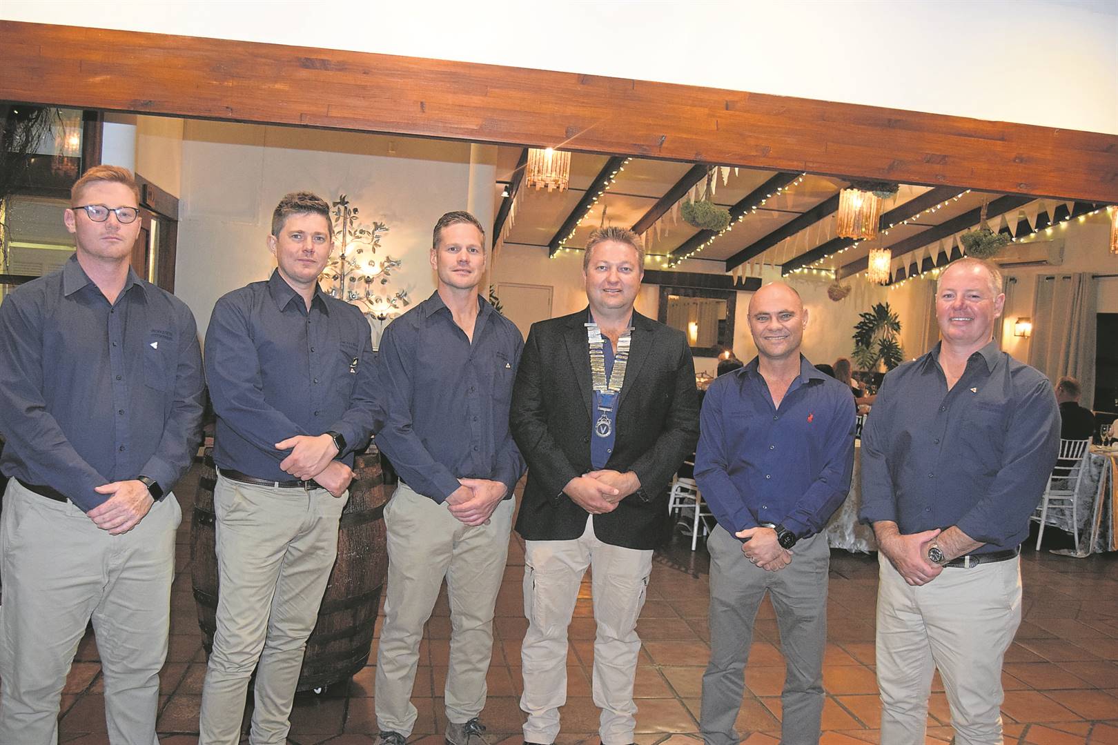 Die inhuldigingsdinee van die Vryburger Omgeemense van Worcester is Saterdagaand 5 Maart by die Damas-restaurant gehou. Die nuwe bestuurslede, wat tot 2025 sal dien, is (van links) Armand Swart (skrywer), Jan de Waal (ritmeester), Corniel Blom (inkomende stuurman), Willa Nolte (stuurman), Ryno Viljoen (basuin/webmeester) en Emile Viljoen (fiskaal).Foto: Ken McIntyre