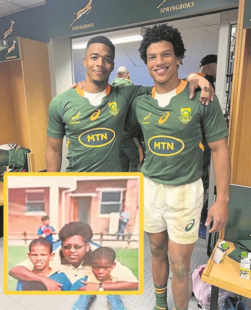 Die skool het Saterdag met trots ’n foto van Williams en Arendse in hul Groen-en-Goud op die skool se Facebook-blad geplaas asook ’n inlasfoto van dié twee, op laerskool, saam met hul destydse rugbyafrigter en onderwyser, Sylvia Matthee.