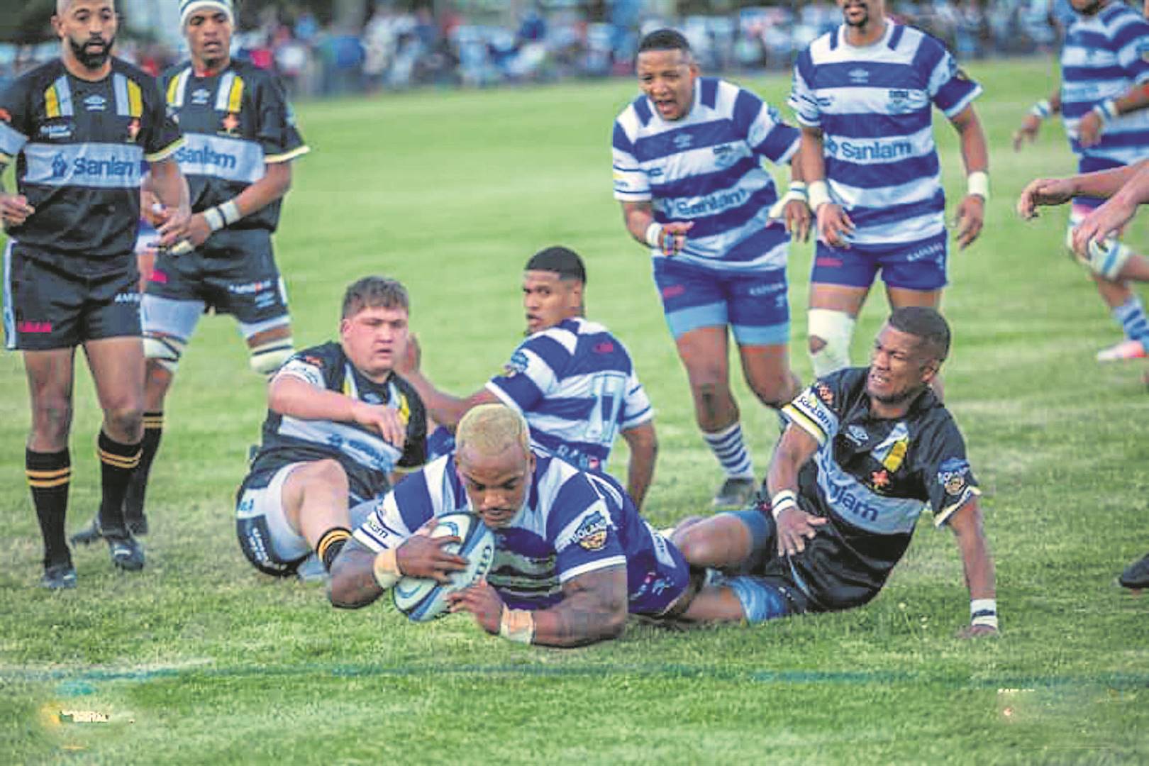 Town het aanvanklik geweldige druk op Roses geplaas en veral die losskakel, Collin Willemse, het met goedberekende skoppe toegesien dat Town op die voorvoet bly. Roses het egter die druk baie goed verwerk en met klinies korrekte spel die kampioene self onder geweldige druk geplaas. Roses het die eerste punte aangeteken toe die regter-vleuel, Easton Arendse, oor is vir ‘n drie en die losskakel, Garth April, verdoel het om hul span 7-0 te laat voorloop. Willemse het hierna met ‘n strafskop geslaag om die telling te laat krimp voordat die plaasvervanger-stut Layola Nolanafa gedruk het nadat Town se haker, Abdura-Ouf Gallie, met ‘n geelkaart afgestuur is.