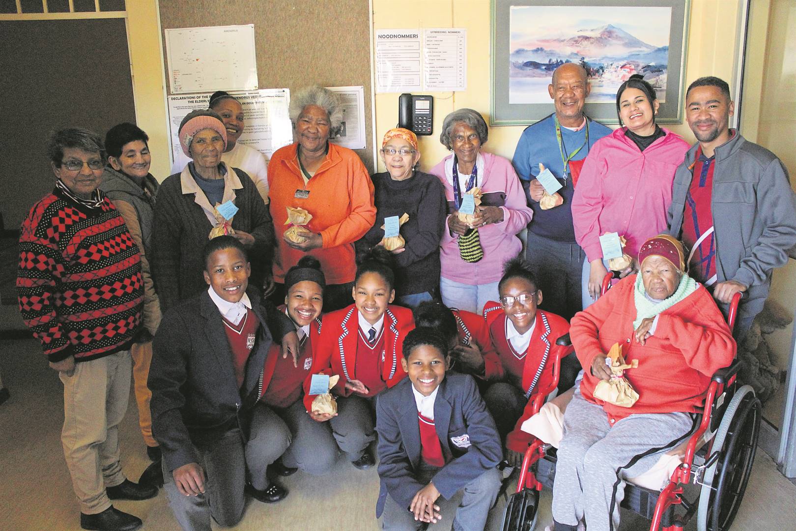 Inwoners by die Awendrus-tehuis vir bejaardes in Worcester se harte het die afgelope Vrydag op Lentedag (1 September) van vreugde oorgeloop toe prefekte van Roodewal Primêre Skool ’n welwillendheidsbesoek aan hulle gebring het. Tydens die besoek het dié leerders vir die senior burgers – as ’n blyk van waardering – gesing, geselsies met hulle aangeknoop en geskenkies aan hulle oorhandig. Foto: Enrico Claassen