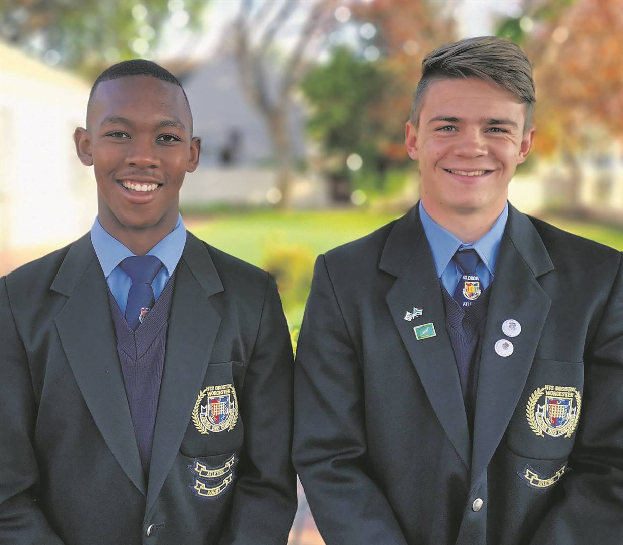 Percy Basson en Hugo Mostert, twee van HTS Drostdy se kranige rugbyspelers, is onlangs in die Boland se o.17-sewesspan opgeneem.Foto: Verskaf