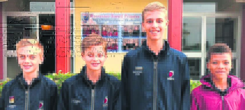 Vier leerders van Worcester Noord Primêre Skool het onlangs in hokkie uitgeblink. Van links is Neil de Wet (o.13 Boland IPT-hokkiespan), Driesie Burger, Roelof le Roux en Gianté Cochrane (almal Boland o.13-shirazspan).Foto: