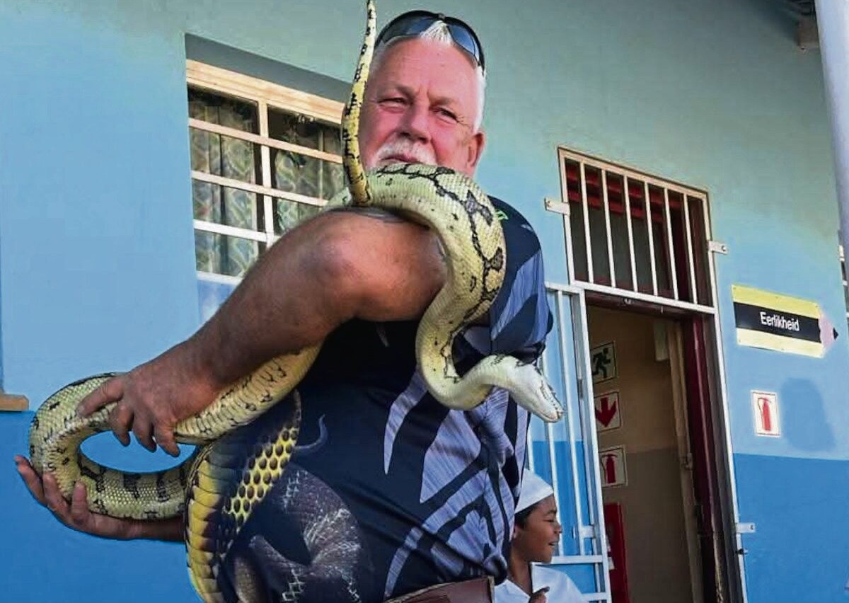 Andre du Preez tydens een van die gewilde bewusmakingsessies oor slange. Foto: Silverfox Snake Rescues