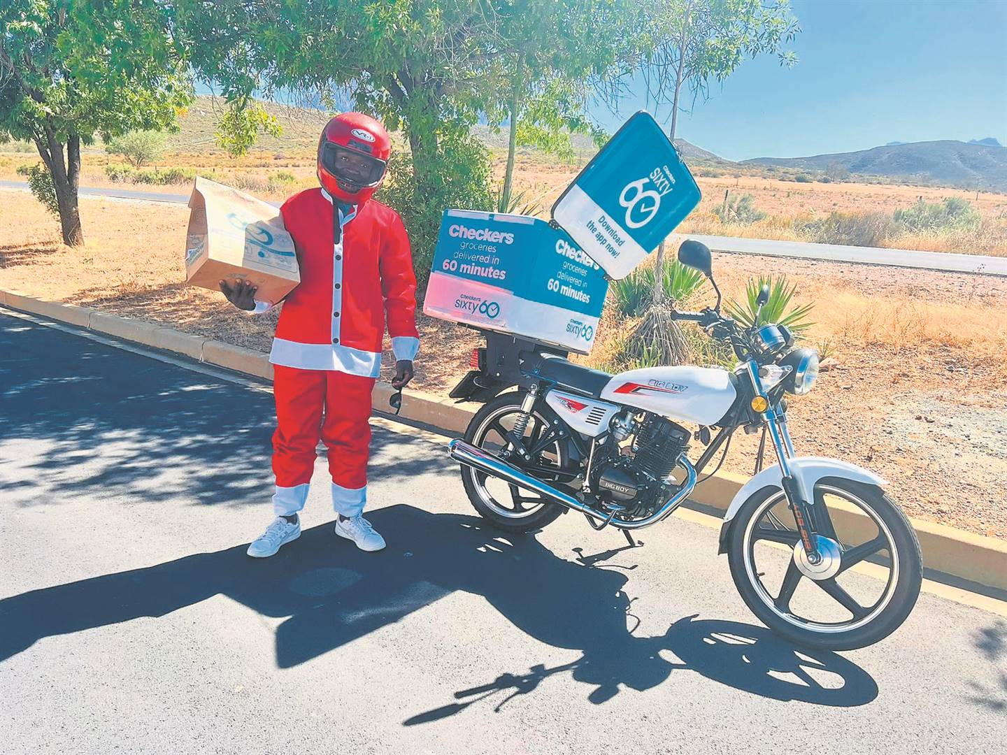 Vader Kersfees is vandeesweek oral in die strate van Worcester gesien – en nee, nie op sy takbok-slee nie, maar eerder as Checkers se kruideniersware-afleweraar.Foto: JP Myburg