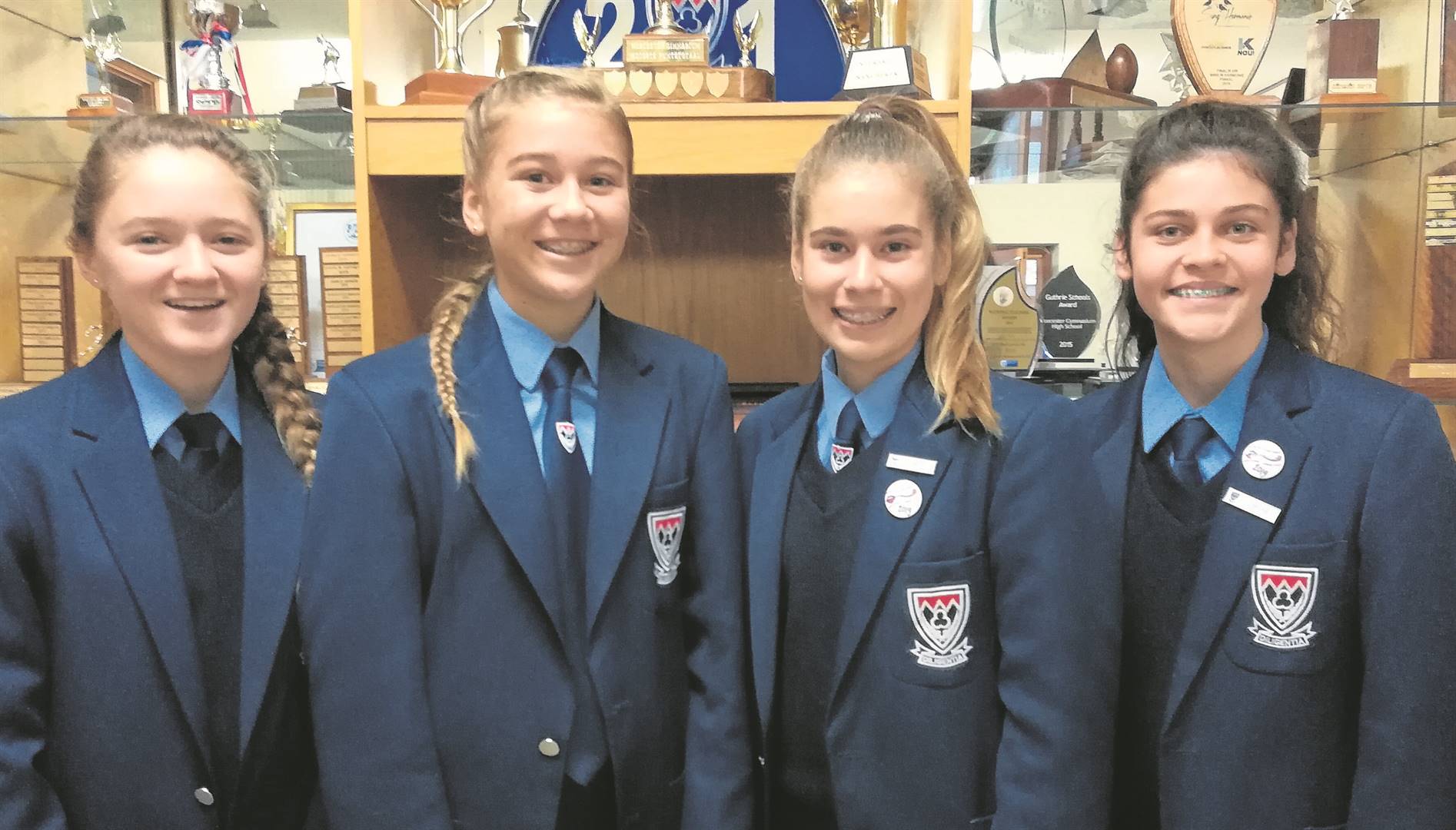 Worcester Gimnasium is verheug om aan te kondig dat die graad 8-redenaarspan na die nasionale rondes van twee verskillende redenaarskompetisies, die Radikale Redenaars- en Oppie Tong Af-redenaarskompetisie, deurgedring het. Hulle gaan ook aan ’n derde kompetisie, Podiumpret, deelneem. Van links is Danielle du Toit, Kristen Boshoff, Carina van der Vyver en Alexa Viljoen. Foto: