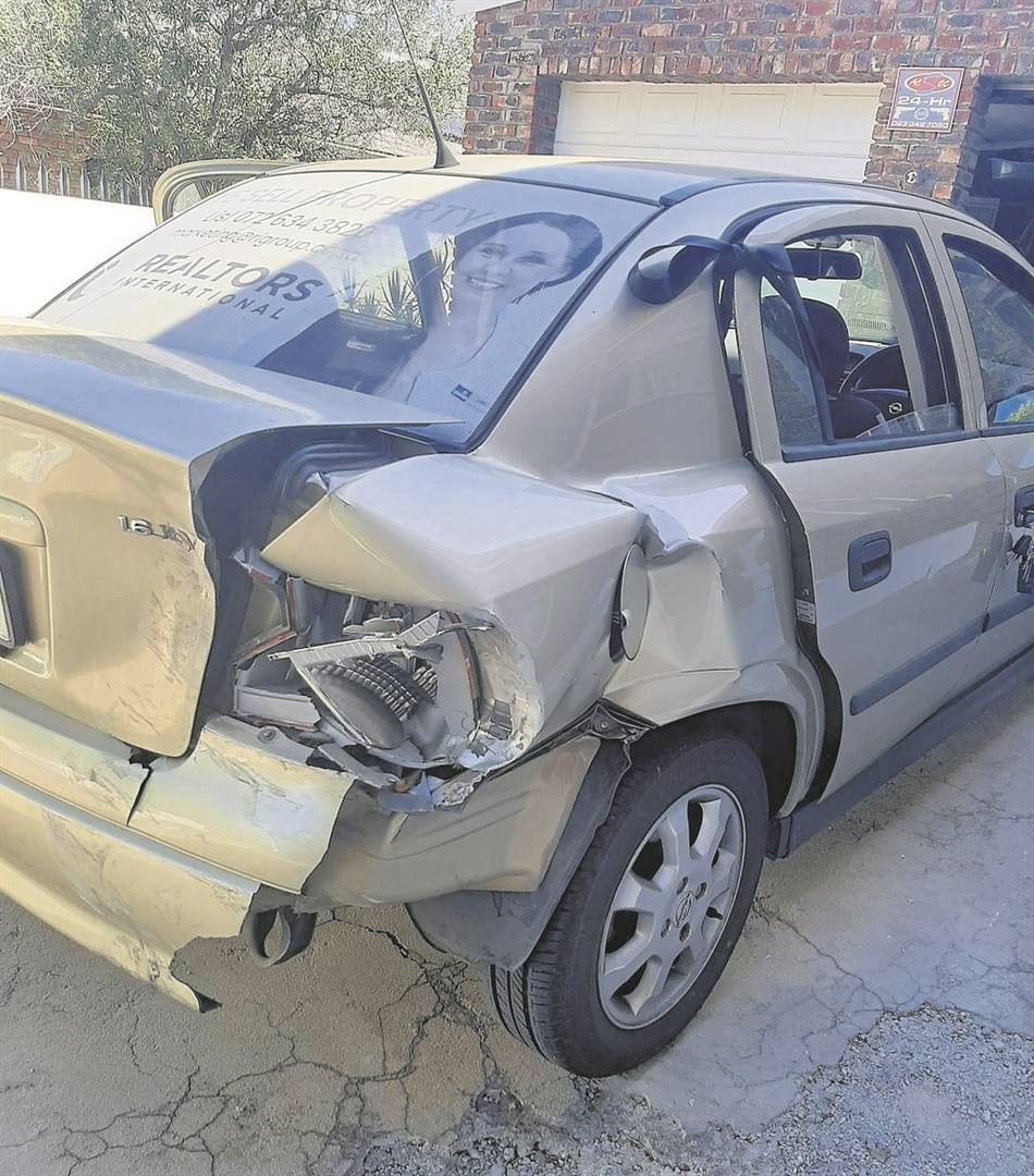“Ek wou by Malanstraat indraai en die man het uit nêrens roekeloos aangery, die padtekens geïgnoreer en in my Opel Corsa vasgery. Hy het toe dadelik weggejaag en oor die brug in die rigting van die Drostdy-sentrum verdwyn. Ek het probeer om hom agterna te sit, maar hy het vinnig spore gemaak,” vertel sy aan Standard.