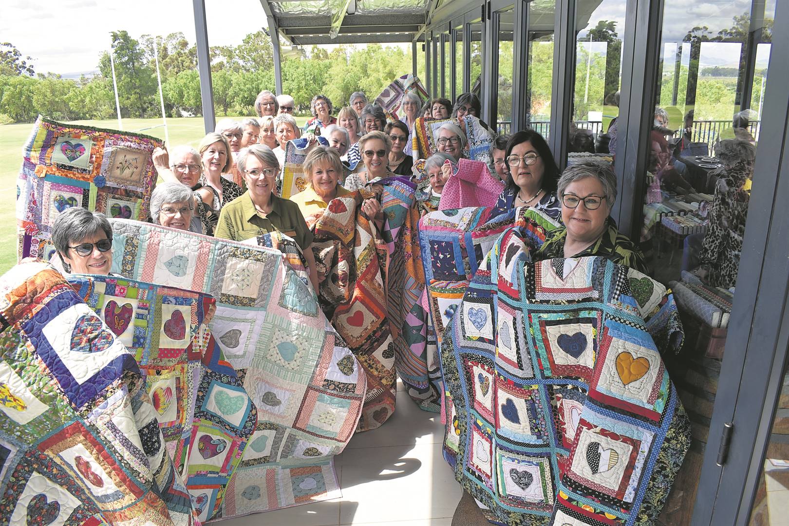 Lede van die Langeberg-laslapgilde wys hul handewerk by verlede jaar se jaareindgeselligheid in Worcester. Die gilde hou Dinsdag 7 Mei om 09:30 ’n byeenkoms in De Doorns by die rolbalsaal. Foto: